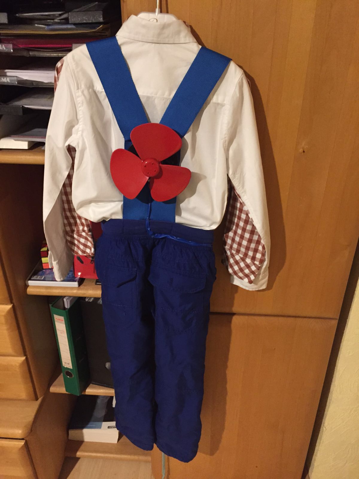 Пропеллер у него трёхлопостный, округлый ... как у вентилятора и, конечно же, мы решили выполнить пропеллер по образцу советского мультика. А вот с остальным (штанишки и рубашка) пришлось создать советско-европейский микс