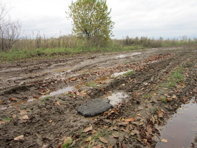 Про дорогу в деревню Шаблово у моих навигационных устройств уже были разные концепции, обе дороги были весьма колеясты и грязны. Последнюю самую смачную грязь мы месить не стали, прошли 100 метров пешком.
