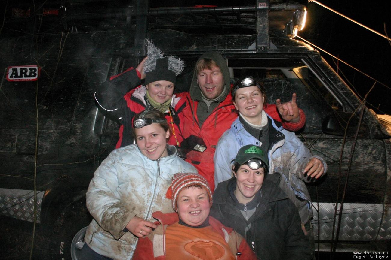 Эта поездка, бесспорно, стала хрестоматийной. Один из первых масштабных выездов клуба 4х4тур с кучей поломок и приключений. Одному УАЗику то ли Валентин то ли Балласт пропилил бензопилой колесо:) У Тимофея загорелся капотный отсек и развалился ступичный, нас рулевая тяга отвалилась. В общем немало бойцов полегло в том бою:) Мы двигались отдельно от общей толпы и заезжали одной машиной (гнилой стандартный козлик без лебёдки) с севера, в то время как остальные с юга. Поняв предел проходимости, мы замаскировали уазик еловыми ветками в лесу и, собрав шмурдяк для ночлега, пошли через ручьи и болота в пустынь пешком. В потьмах с одним чахлым фонариком. Славно было!