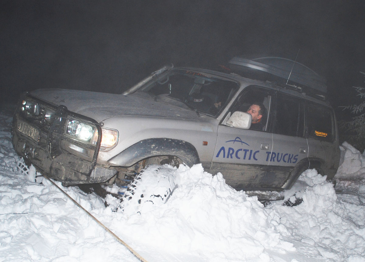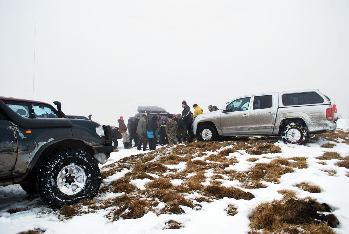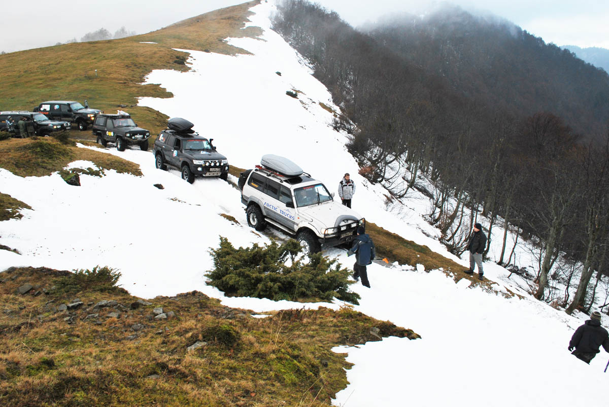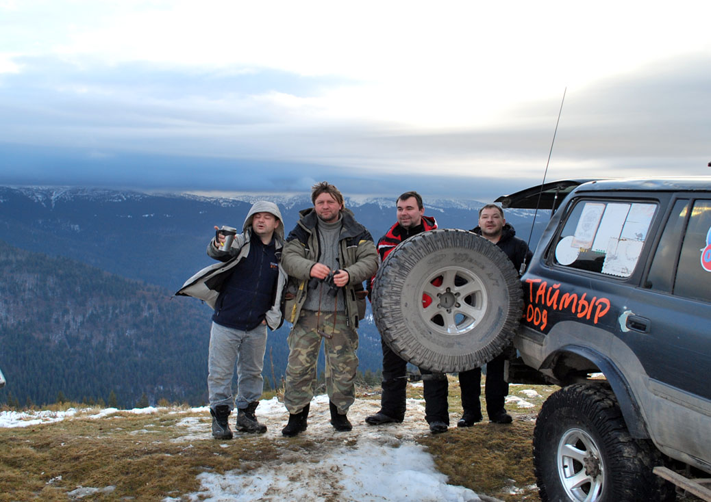 ......Ночь. Завывает жуткая метель, кромешная тьма кругом, ветер сбивает их с ног, срывает одежду. Температура стремительно падает. Обледеневшая одежда не дает согнуть руку. Онемевшие пальцы их ног могут уже никогда не почувствовать живого тепла домашнего камина. Они крайне измотаны.А пропасть так близка. Скользкая дорога едва нащупывается в расщелине. Лед. Голый лед. Кругом.Зацепиться не за что, а уклон запредельный, такой, что моргают лампочки аварийного давления масла! Машины скользят. Цепи порваны острыми камнями в клочья, шипы не держат машины. Тревожно ревут дизеля.Жалобно воют раскаленные лебедки. Тросы натянуты ,как нервы , до последнего предела, в последнем порыве, в последней надежде сопротивляясь обезумевшей стихии. Им уже не спастись. Поздно. Слишком поздно... Снежный заряд пришел внезапно. Никто не ждал такого ада. Они без пищи уже три дня. Вместо воды они судорожно хватают потрескавшимися губами горсти жесткого снега. Они хрипят в немом бессилии и уже не могут говорить.... В сумерках в пропасть рухнул, оторвавшийся, багажник со всем оборудованием и вещами экспедиции. Антенна спутникового телефона была там. Теперь он бесполезная игрушка. Их никто больше не услышит. И ни кто не придет к ним на помощь. У них на исходе топливо, и вот вот кончатся свежие газеты. Они пережили многое. Но теперь настает последний час, последний бой, последний момент истины. Один из них достал из потайного кармана у сердца и поцеловал, розовую детскую пинетку. Скупая мужская слеза замерзла, так и не скатившись по небритой щеке. Маленькая дочурка никогда не увидит отца... Пограничники! Пограничники на гусеничном транспортере!?Пограничники на гусеничном транспортере, в мае ,лишь случайно обнаружат ,торчащие из подтаявшего снега ,чьи то, снегоступы.... Сухой прощальный залп из табельного оружия над пропастью, разорвет души их жен и близких...