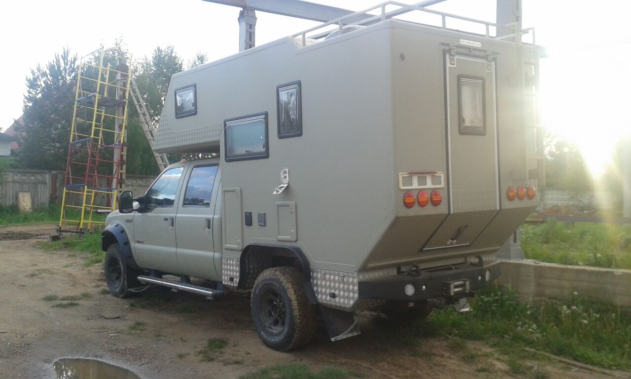 Вес 5 тонн, внутри конечно класс, огорчило лично меня только одно, когда на нем из бокса выезжал качает его безбожно, надо минимум еще по одному аморту на колесо и стабилизаторы раза в два толще.