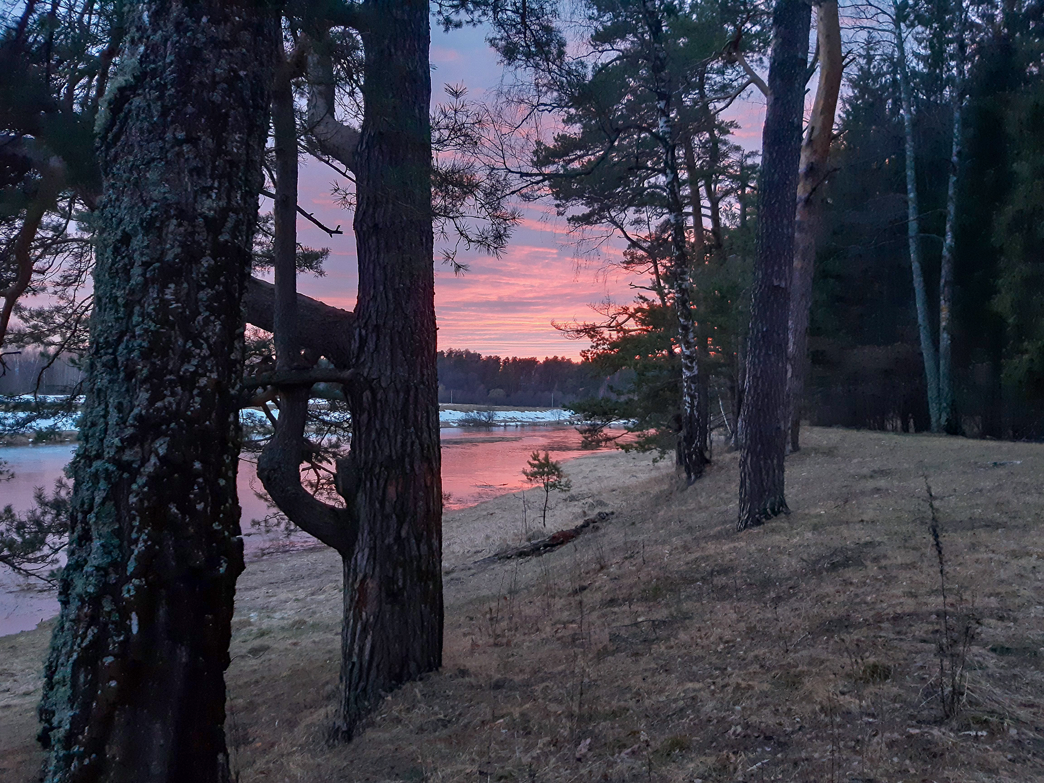 Вся наша красота на месте. Река разлилась немыслимо! Птицы поют, бобры плавают. Дорога еще не растаяла в лесу , да и в поле почти проезжая.