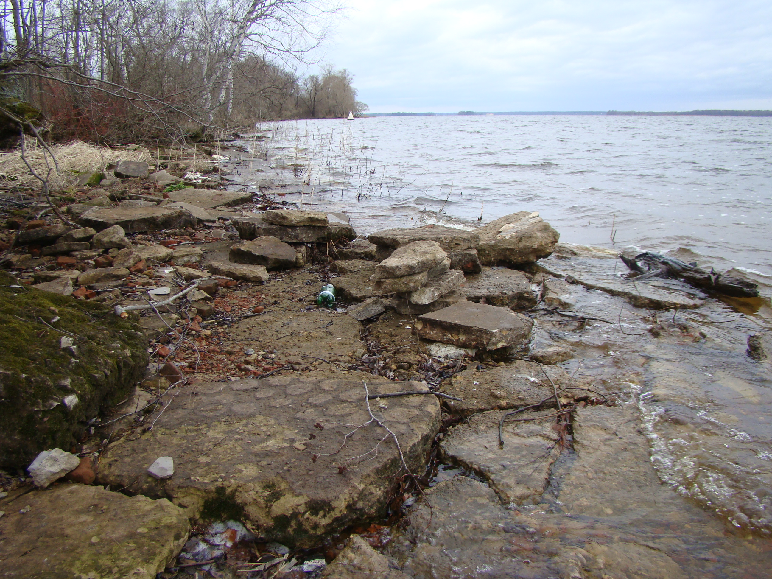 Здесь только битый кирпичь и осколки мощения. Так же два острова, где ранее были собор и церковь...