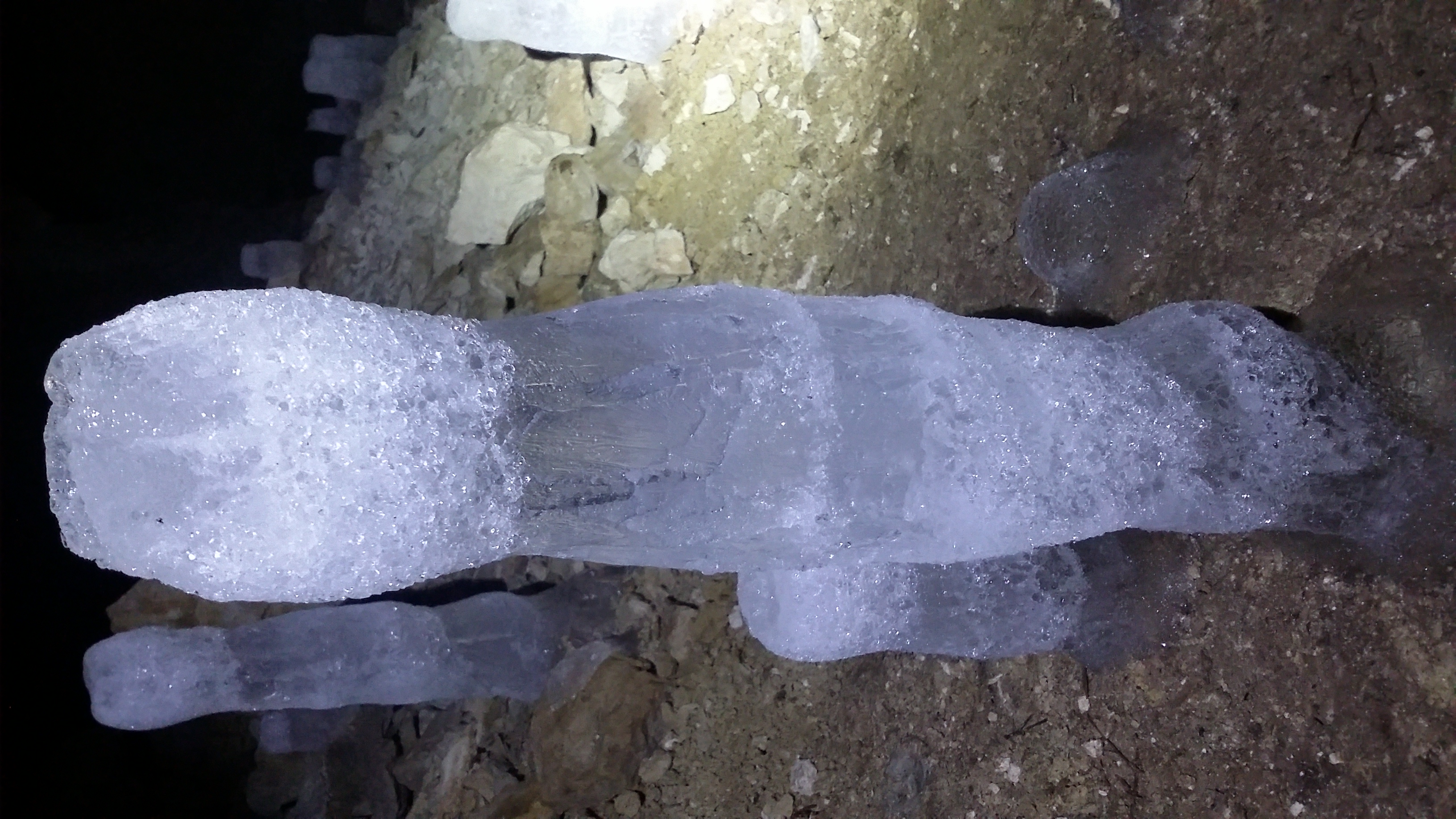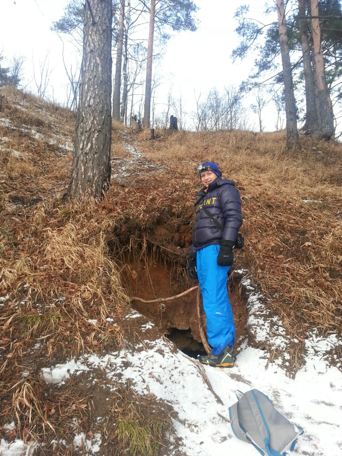 Совершенно случайно 1 февраля попал в это место. Так сложились звезды. Доехал до Старицы, поворачиваем налево и едем до конечной точки, где можно бросить #пузотера# -дер. Пентурово. Далее до деревни Толпино идет лесная-полевая дорога, по которой проедет любой стоковый внедорожник. Мы же пошли пешком. До Толпино шли мин.40 спокойным шагом.Постоянных жителей в Толпино нет. Я так понимаю что деревня живет только когда нет снега.В Толпино по указателю идти вдоль ручья по правой стороне. В одном месте сразу после деревни ручей, его надо перейти. Сапоги или аналогичная обувка не помешает. Весной ручей достаточно широк и наличие высоких сапог наверное обязательно. Ну или разуваться. Пещера Ледяная находится прямо около Волги, где этот ручей впадает в реку. Около впадения ручья в реку есть отличное место для кемпинга.Берег Волги очень красив. Входы в пещеру находятся на среднем ярусе возвышеностей. Т.е. если берег реки это нижний ярус, соответственно верхний ярус это верхушка берега. А по середине идет тропа. Так вот она и приводит ко входам. Мы нашли 4 входа. Первый очень узкий, но нам всетаки удалось туда проникнуть. Правда мы сильно испачкались в незамершей земли при спуске. Но, далее есть нормальный вход в пещеру.Соответственно наличие фонарей, сапог и веревки. Веревка нужна чтоб не потерятся в пещере. Там много всяких ответвлений, и с первого раза немного страшновато. Также есть летучие мыши, правда они спали, но…В пещере тепло.От дер.Пентурово до пещеры идти 3 км. Мы спокойно дошли за 1 час. Также дорога идет вдоль берега Волги прямо к пещерам. Но откуда она начинается пока я не выяснил. Вообщем рекомендую. Всем удачи.