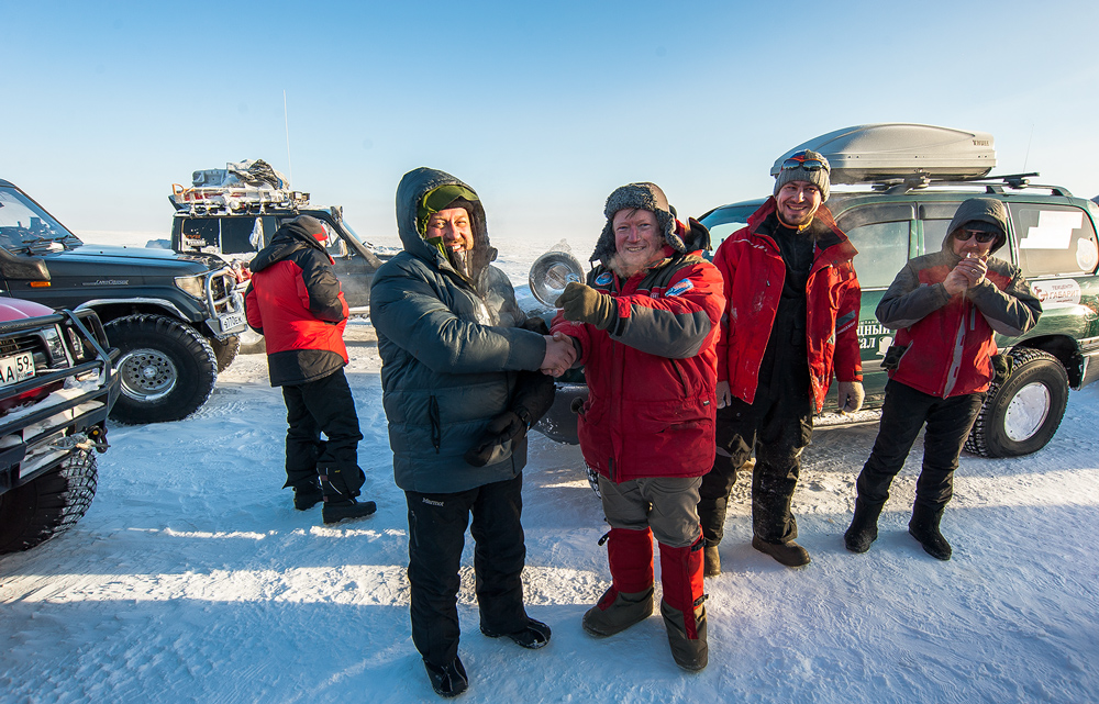 Встреча с Пермяками. Обмениваемся сувенирами с предводителем Сергеем ( Бродяга 4х4) . ПЧ на Ямале. :))
