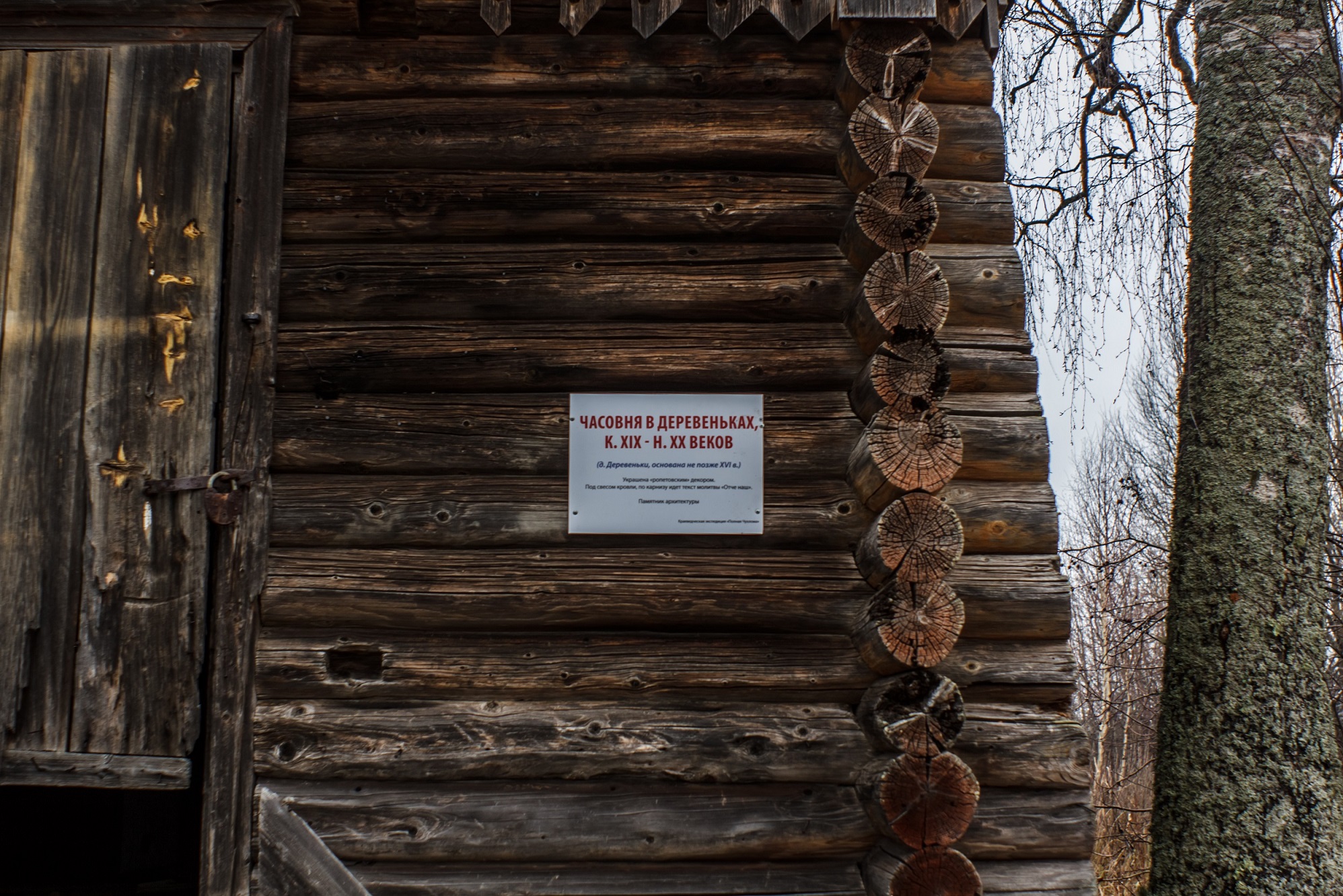 Команда "Окрута" Второй день Полной Чухломы 2018 Точка 54 Д. Деревеньки. Небольшая деревянная рубленая часовня, построенная в кон. XIX - нач. ХХ вв. в деревне холмовского прихода. Четверик, украшенный "ропетовским" декором, завершенный невысоким шатром.